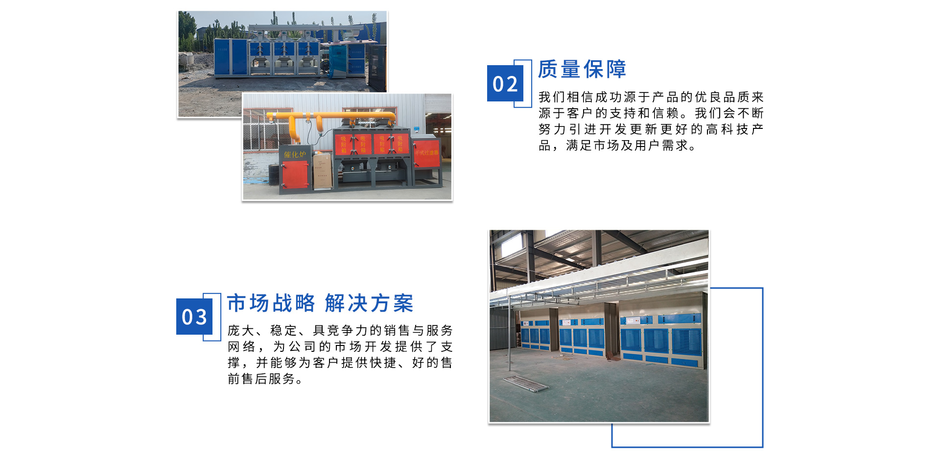 公司自成立以來,始終專注于工業(yè)廢氣、污水、粉塵等環(huán)境污染的治理,先后研發(fā)出催化燃燒設(shè)備、光氧催化廢氣處理設(shè)備、低溫等離子廢氣處理設(shè)備、粉塵處理-體化設(shè)備等一系列環(huán)保設(shè)備,產(chǎn)品先后通過ISO901質(zhì)量管理體系認(rèn)證、中國環(huán)境保護產(chǎn)品認(rèn)證。
